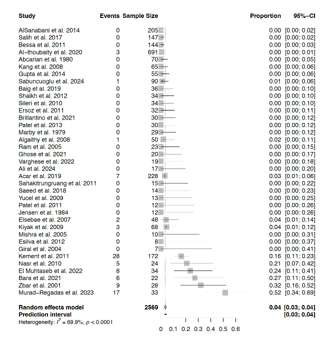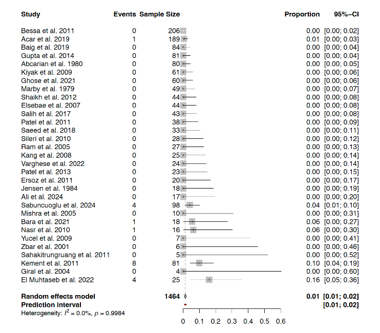 Figure 2. Forest plot of studies reporting incontinence in males after LIS