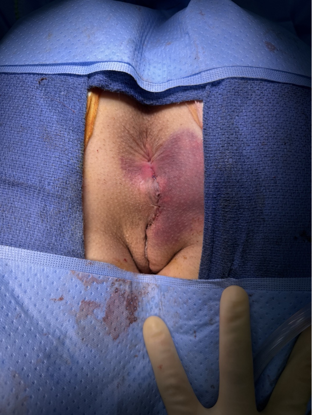 Post sphincteroplasty and anoplasty with labial laceration repaired by gynecology.
