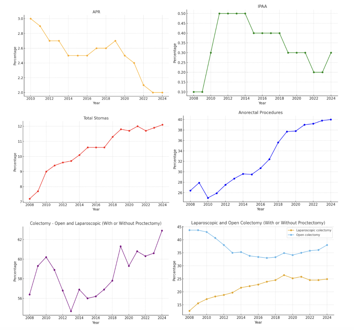 General Surgery Resident Colorectal Case Trends Over Time by Procedure Type