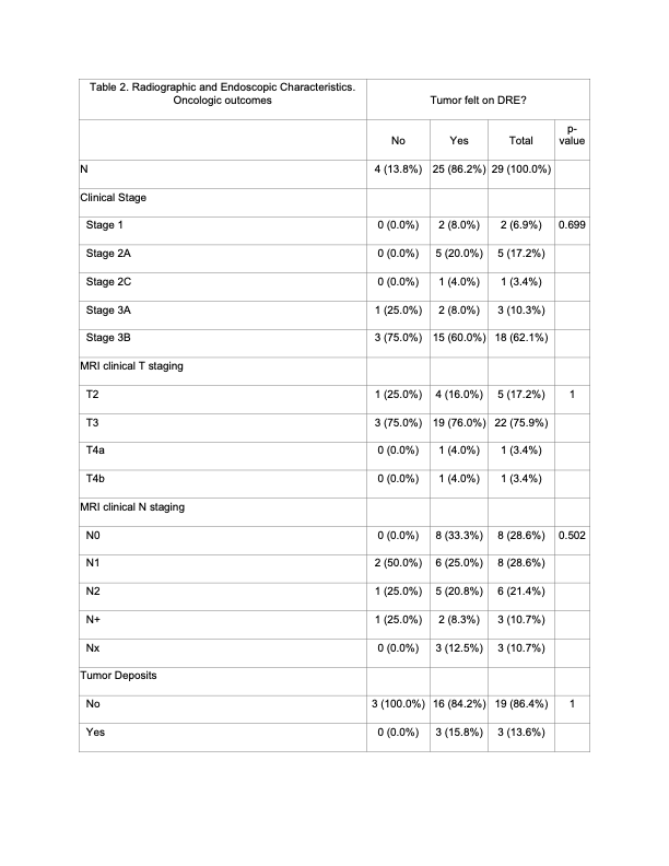 Radiographic and Endoscopic characteristics of the tumor. Oncologic outcomes