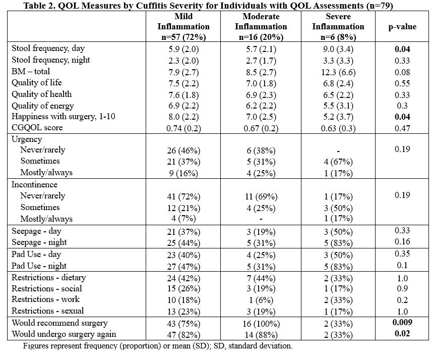 QOL Measures by Cuffitis Severity for Individuals with QOL Assessments (n=79)