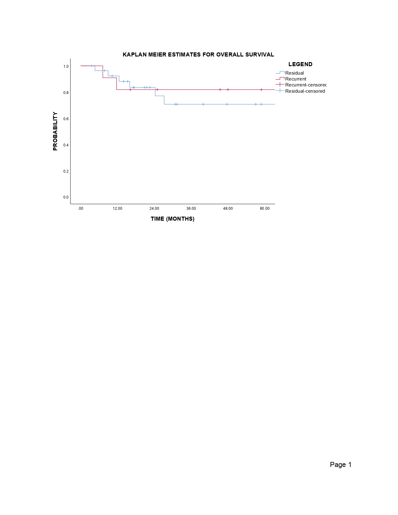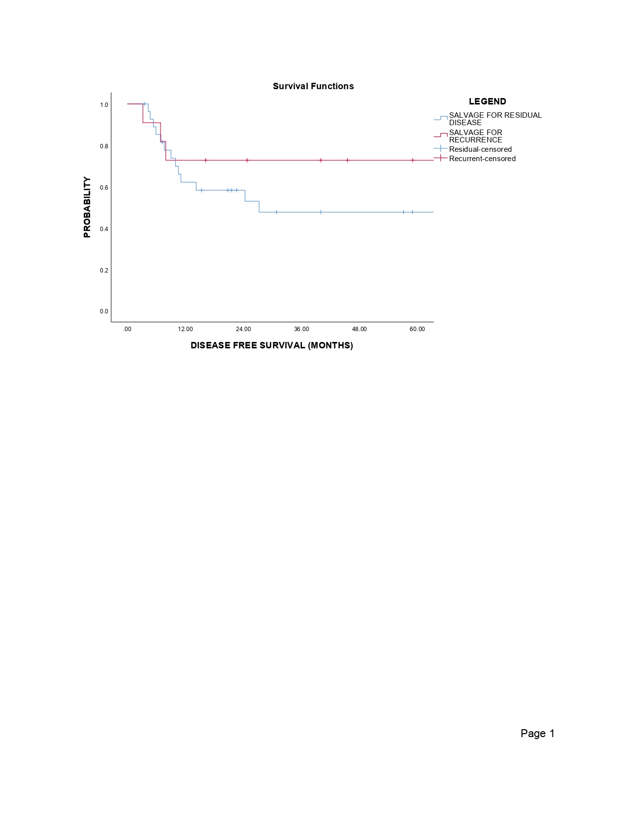 OVERALL SURVIVAL- RECURRENCE VS RESIDUAL DISEASE COHORT POST SALVAGE SURGERY