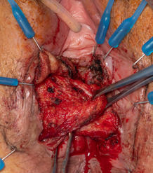After ensuring adequate mobilization of the external anal sphincters, the edges are reapproximated with a 2 cm overlap.
