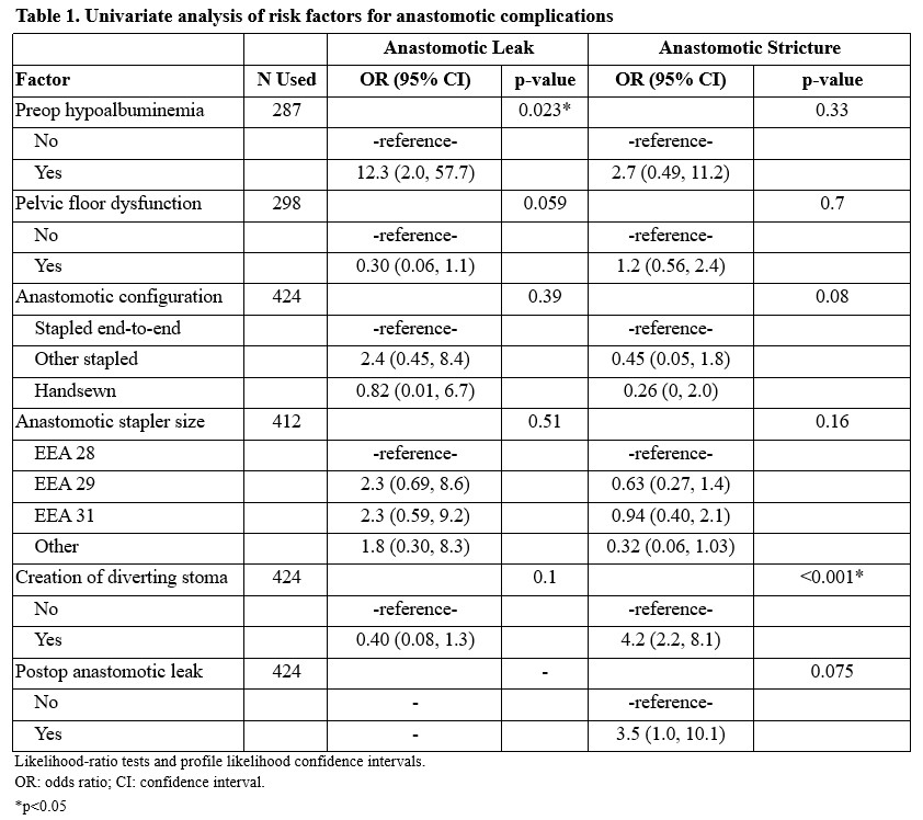 Table 1. Univariate analysis of risk factors for anastomotic complications