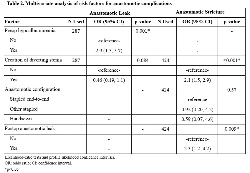 Table 2. Multivariate analysis of risk factors for anastomotic complications