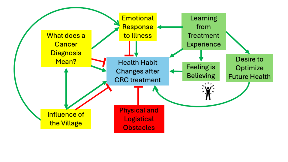 Positive lessons about the effect of health habits from the treatment experience facilitated adoption of habits. The interpretation of what a cancer diagnosis signified in one's life, emotional responses to illness, and the influence of family and friends were factors that could act as facilitators or barriers. Physical limitations, financial strain, and job responsibilities often acted as barriers.