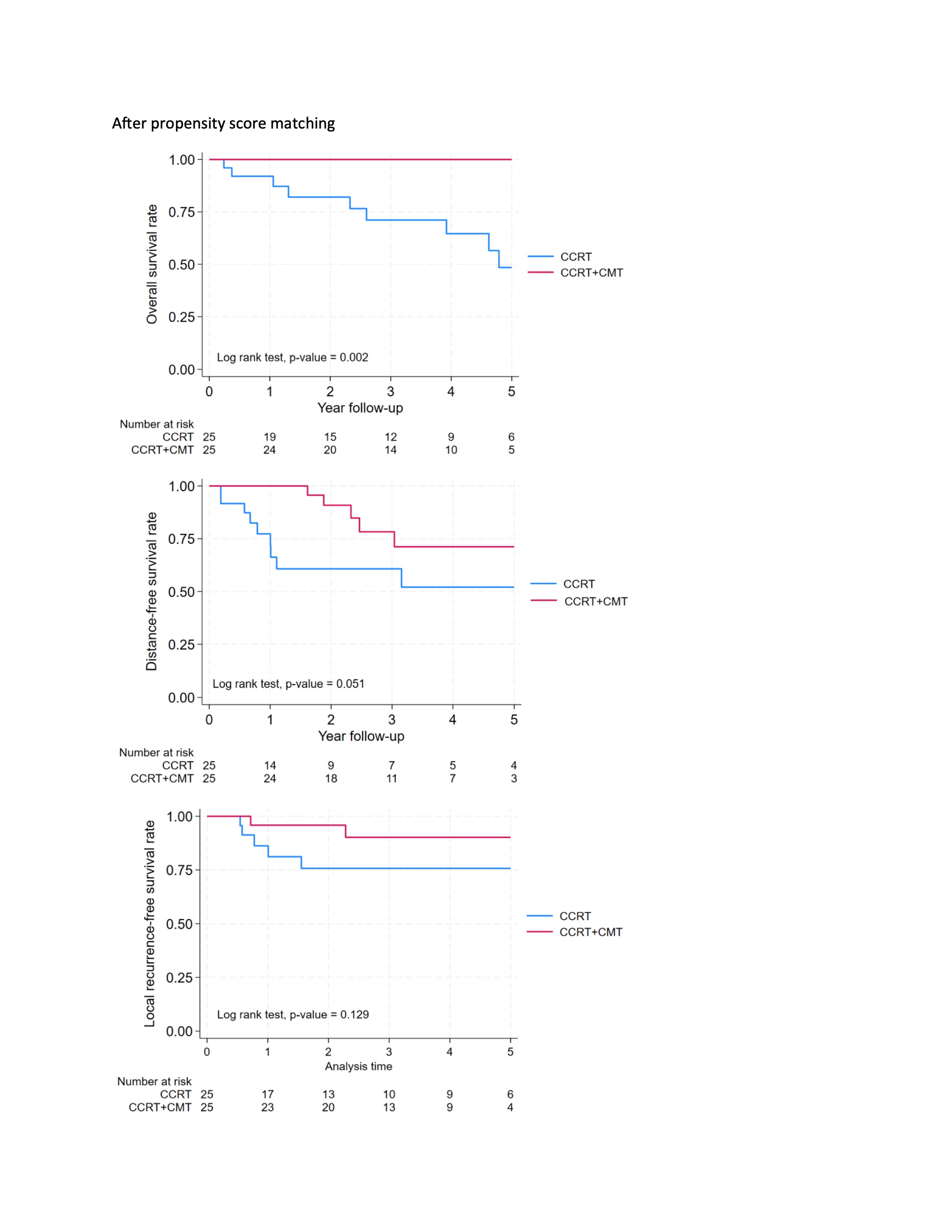 This figure shows 3-year overall survival, distant metastasis-free survival, and locoregional recurrent-free survival.